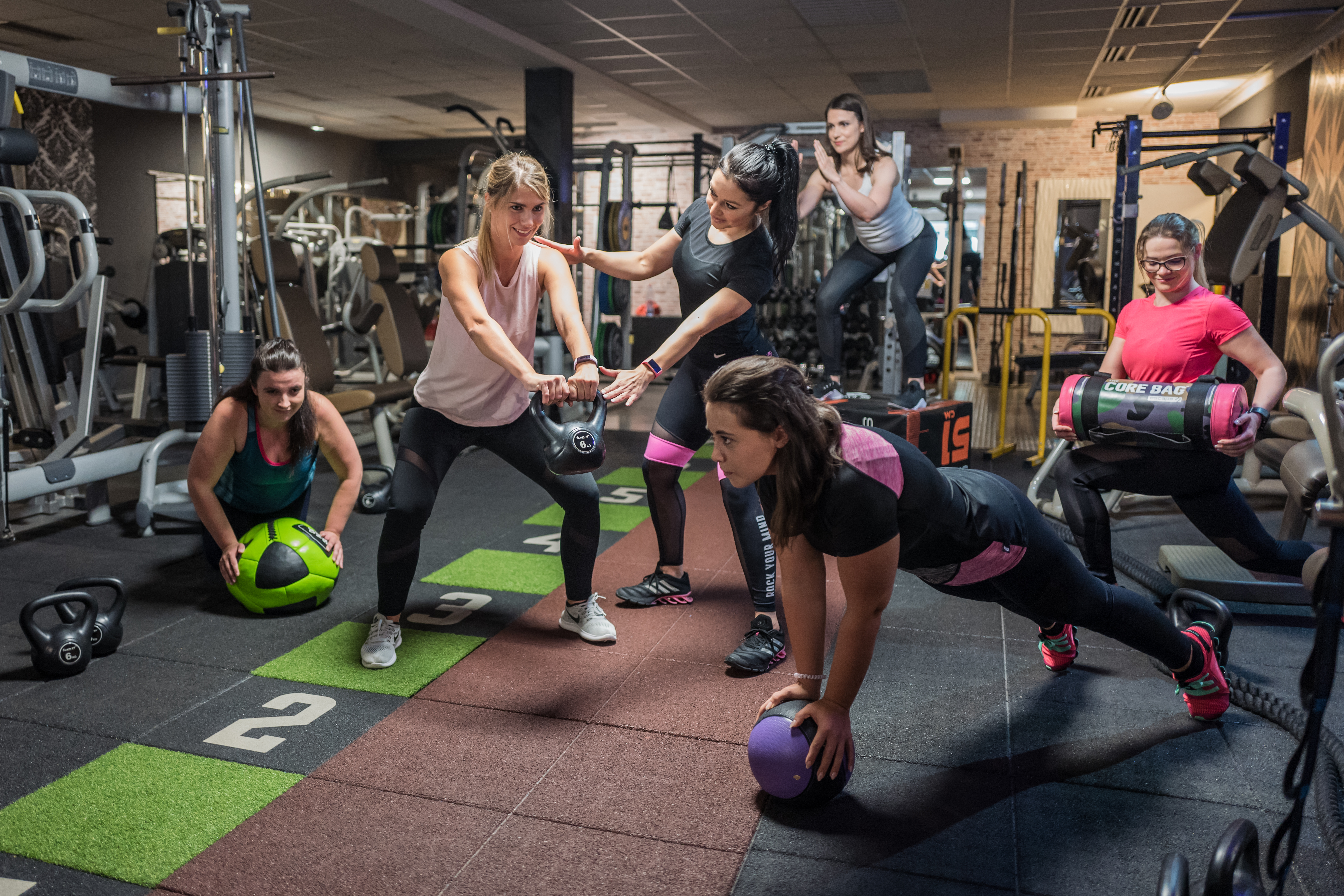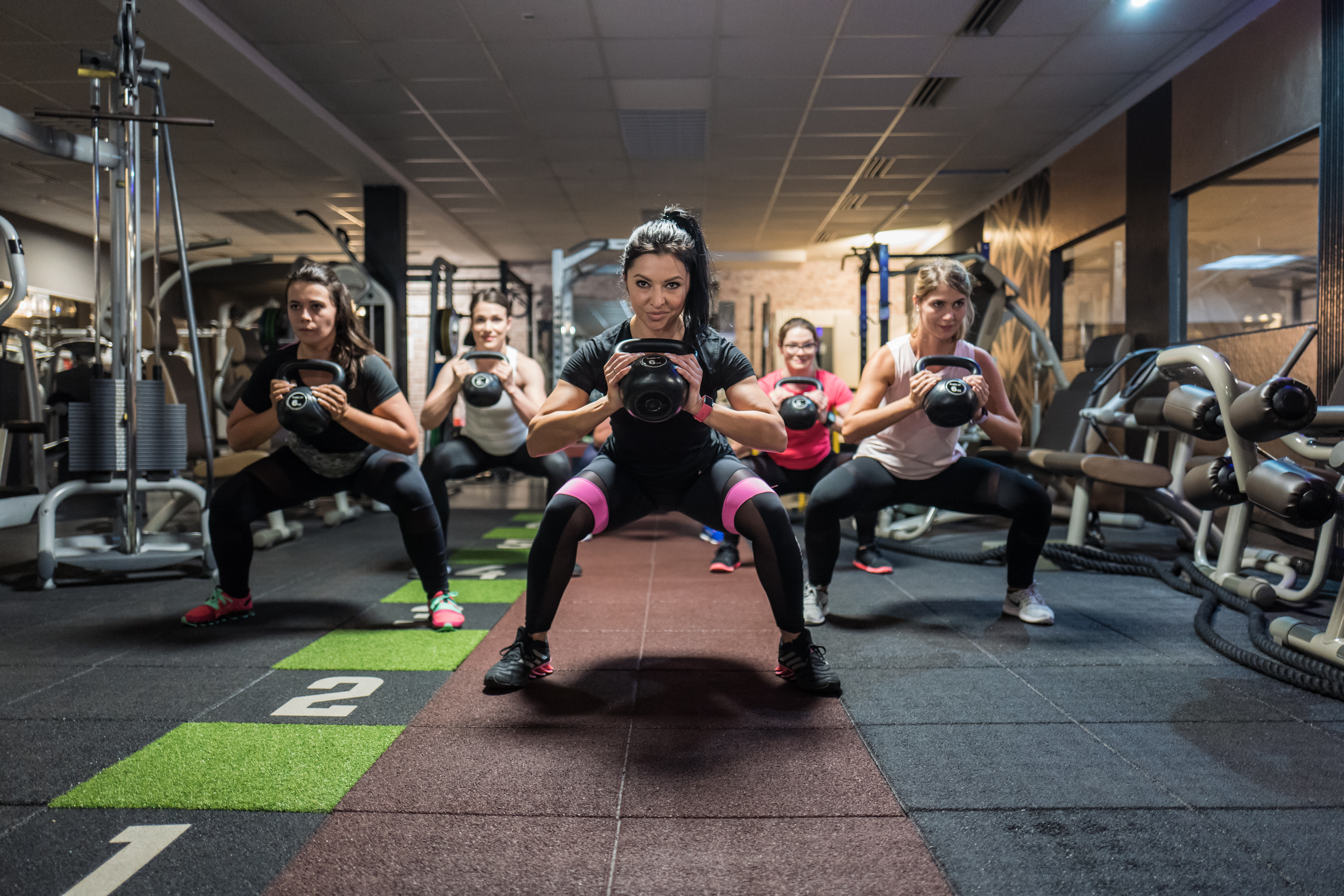 Vor allem auch im funktionellen Fitness ist das (Klein-) Gruppentraining sehr beliebt. Bei Übungen mit der Kettle Bell und dem Battle Rope können sich oftmals Fehler in der Übungsausführung einschleichen. Da ist ein qualifizierter Kursleiter oder Fitnesstrainer Gold wert. Dieses Foto entstand in unserer neuen Functional Area.
